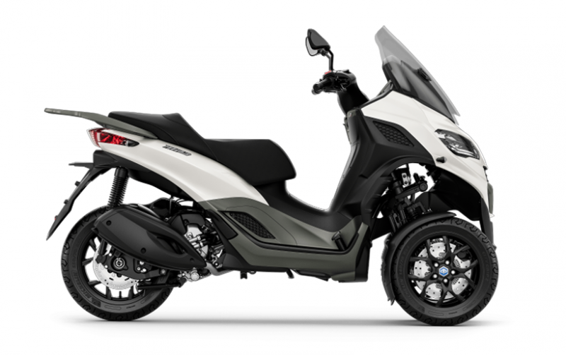 Le Piaggio MP3 310 est disponible en deux variantes de couleurs : Blanc Luna et Gris Grafite. Toutes les deux associent a leur teinte des finitions gris satiné métallisé.